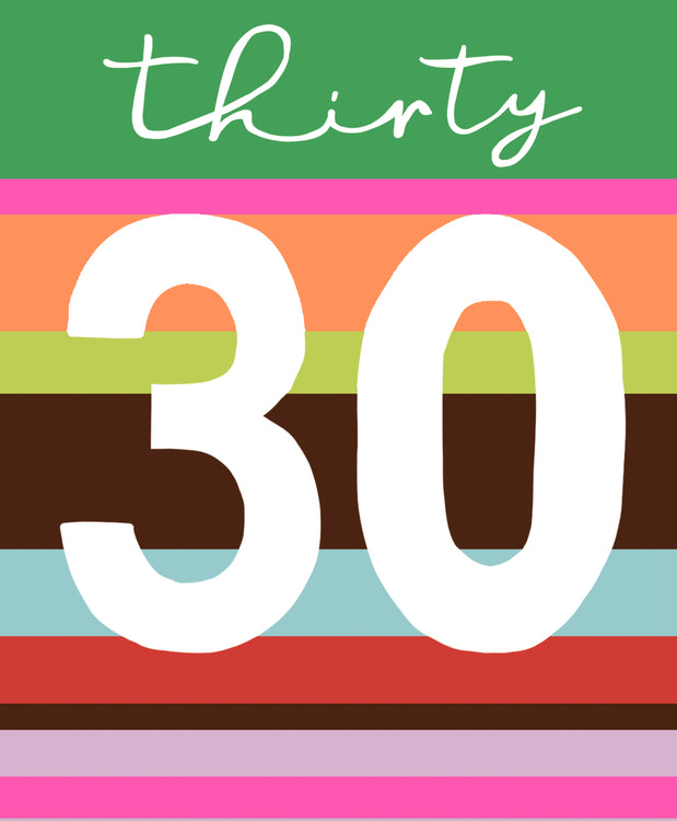 Wish them a very happy 30th birthday with this joy filled card. Supplied with a matching envelope.