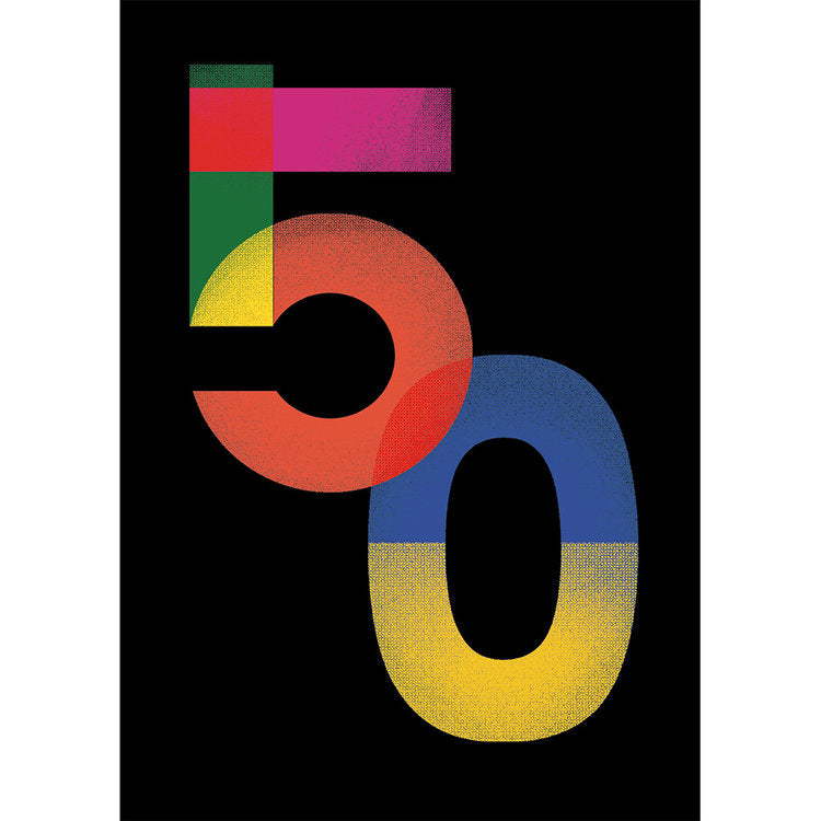 Celebrate 50 with this fun neon card from Woodmansterne! Supplied with a matching envelope.