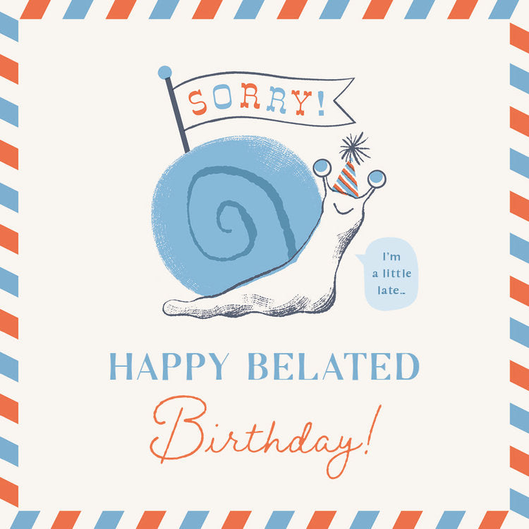 A bright and bold Belated Birthday card. Better late than never! Card supplied with a matching envelope.