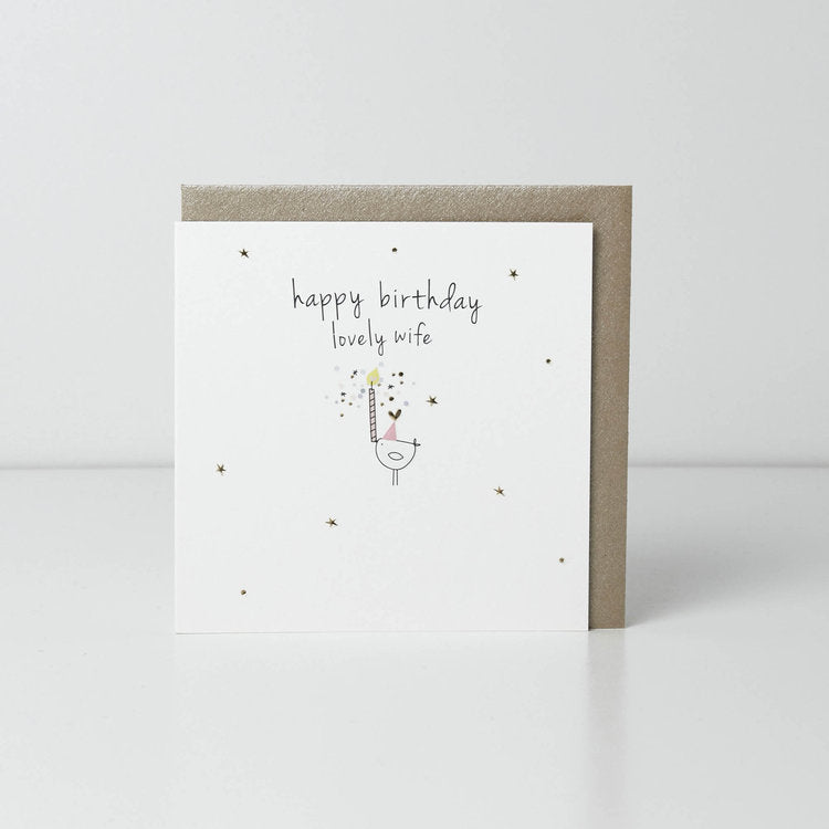 Elegant lines with luxurious gold touches to wish your Lovely Wife a special Happy Birthday. Supplied card clasped with a Gold Kraft envelope.