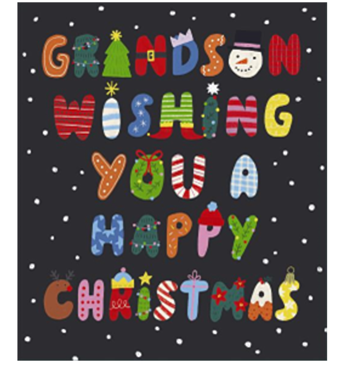 Send festive wishes to a special Grandson at Christmas with this fabulous card. Supplied with a matching envelope.