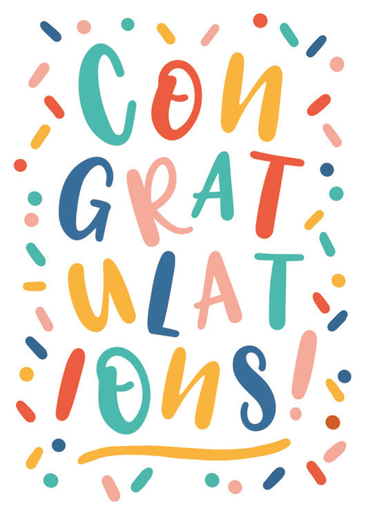 Celebrate any big achievement with this bold and colourful "Congrats!" card. Whether it's a graduation, promotion, or new job, this vibrant card is perfect for someone who deserves a big celebration. Supplied with a matching envelope.