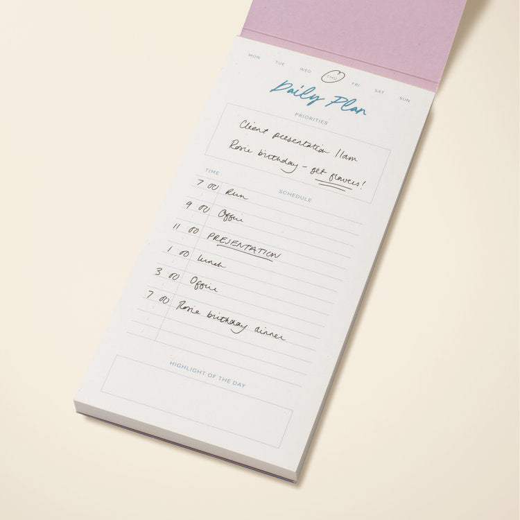 Keep track of your daily tasks with this stylish blue daily planner. With undated pages and space for daily schedules to help you to prioritise lists, by Papier