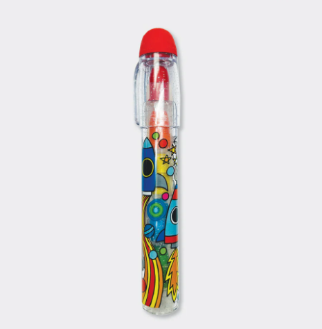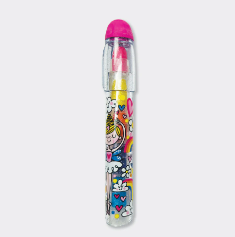These bright and chunky rocket crayons includes 5 different pop up colours and an eraser on the end of the lid. They feature glittery see through barrels with fun illustrations of Bess with a 'Bee Happy' message! Not suitable for children under 36 months.