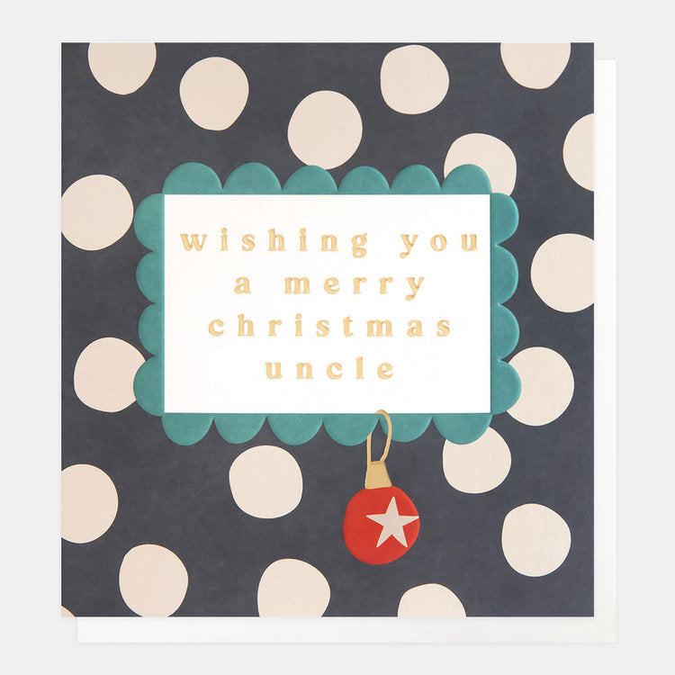 Wish Uncle a very Happy Christmas with this wonderful card. Supplied with a matching envelope.