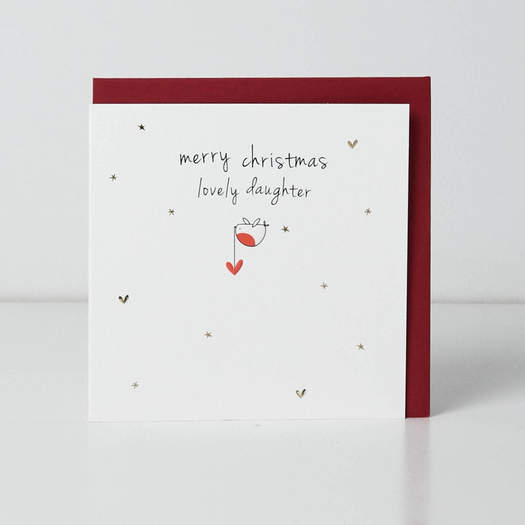 Wish a wonderful Daughter a very Happy Christmas with this wonderful card. Supplied with a matching envelope.