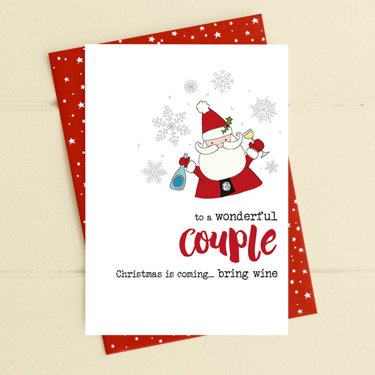 Send festive wishes at Christmas to a lovely Couple with this great card. Supplied with a matching envelope.