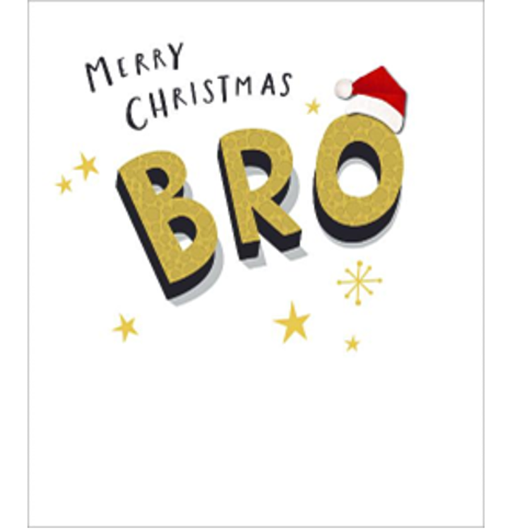 A cute Christmas relations card for a brother, the text on the front of the card reads 'Happy Christmas Bro'. Supplied with a matching envelope.