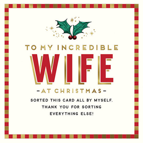Christmas cards for every Wife. Whether it's a fun, heartfelt or just straight festive card, Postmark is sure to offer whatever card will bring a smile to her face!