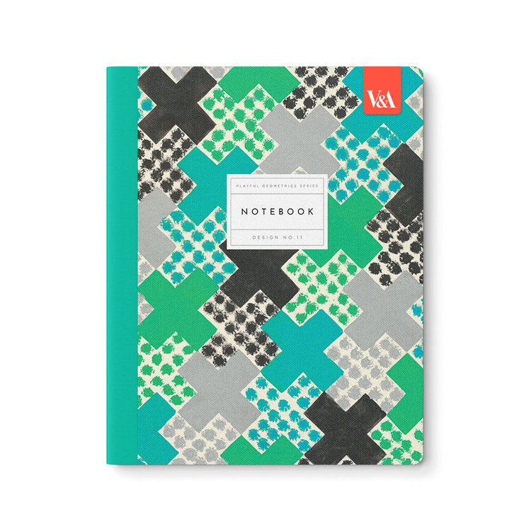 Capture your ideas with the Playful Geometrics Green Crosses Premium Exercise Book. Inspired by designs in the V&A archives, this 10x8-inch notebook with 64 lined pages is sustainably crafted, making it perfect for eco-conscious note-takers.