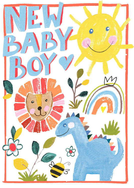 Send huge congratulations on the arrival of their new Baby Boy with this adorable card. Supplied with a matching envelope.