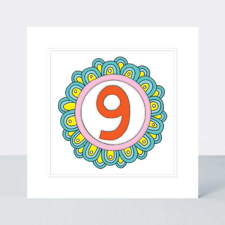 These contemporary Age 9 card feature colourful and quirky illustrations, framed and embossed with deep detail. Supplied with bright envelopes.