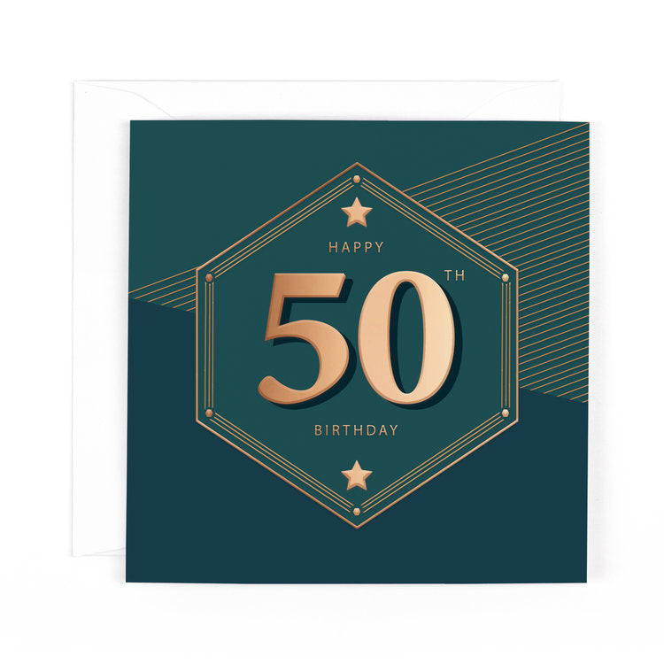 Send big Birthday wishes to someone special on their 50th Birthday with this elegant design from Hotchpotch's Pocket Square collection, subtly finished with gold foiling. Supplied with a matching envelope.