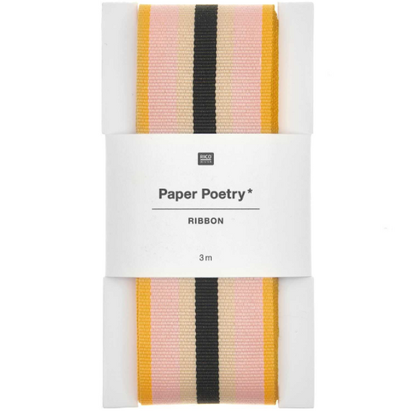 Rico Design - Ribbon Stripes Neon Red Pink Apricot Black