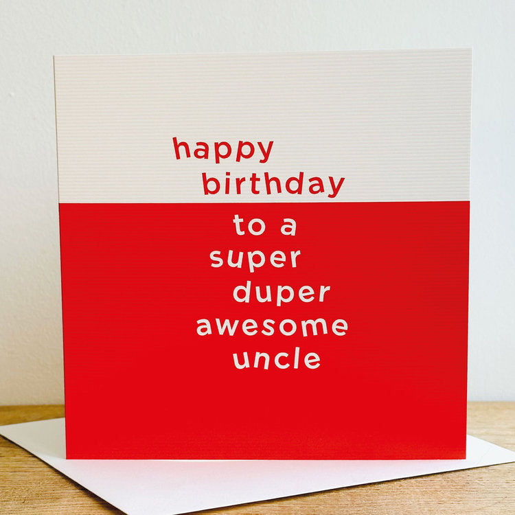 Let him know what special Uncle he is on his Birthday with a contemporary Birthday Card with striking bold print on a cord-textured card, matched with a quality cream envelope.