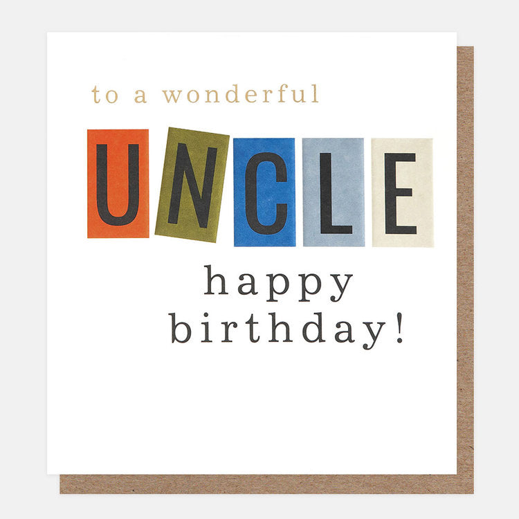 Wish your Uncle the happiest of birthdays with this box print 'to a wonderful uncle' card. Card is supplied with a brown kraft envelope.