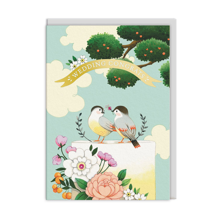 Wish them a Happy Wedding Day with Joo Joo Paper’s lovebird illustration toasts the newlyweds, ideal for couples who appreciate simple, heartfelt charm. All card include a matching envelope.