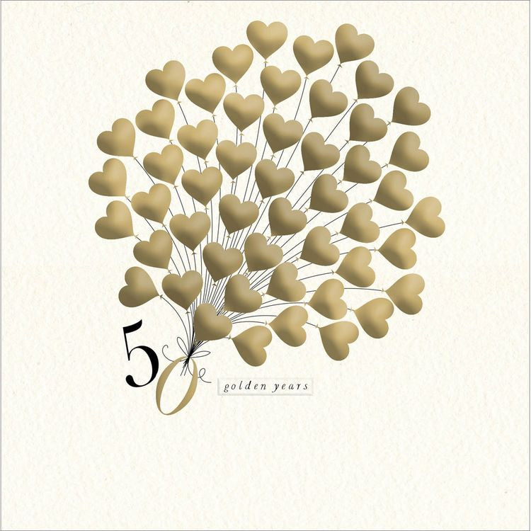 Congratulations them on 50 years of marriage with this sophisticated heart design golden wedding anniversary card by Woodmansterne.