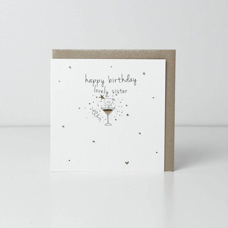 Elegant lines with luxurious gold touches to wish your Lovely Sister a special Happy Birthday. Supplied card clasped with a Gold Kraft envelope.