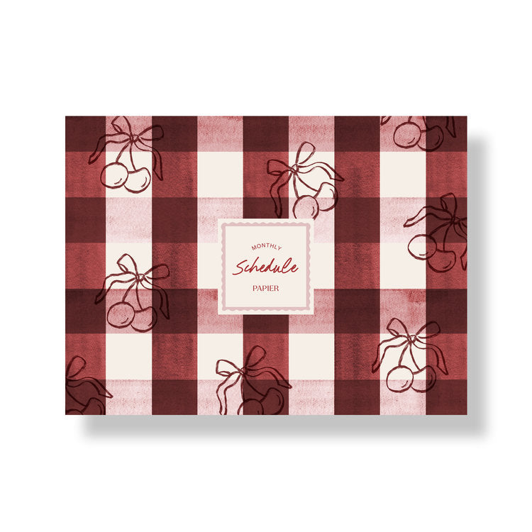 A red cherry patterned monthly schedule to help you stay organised and keep track of important tasks or dates. A useful and stylish gift to stay productive, by Papier.