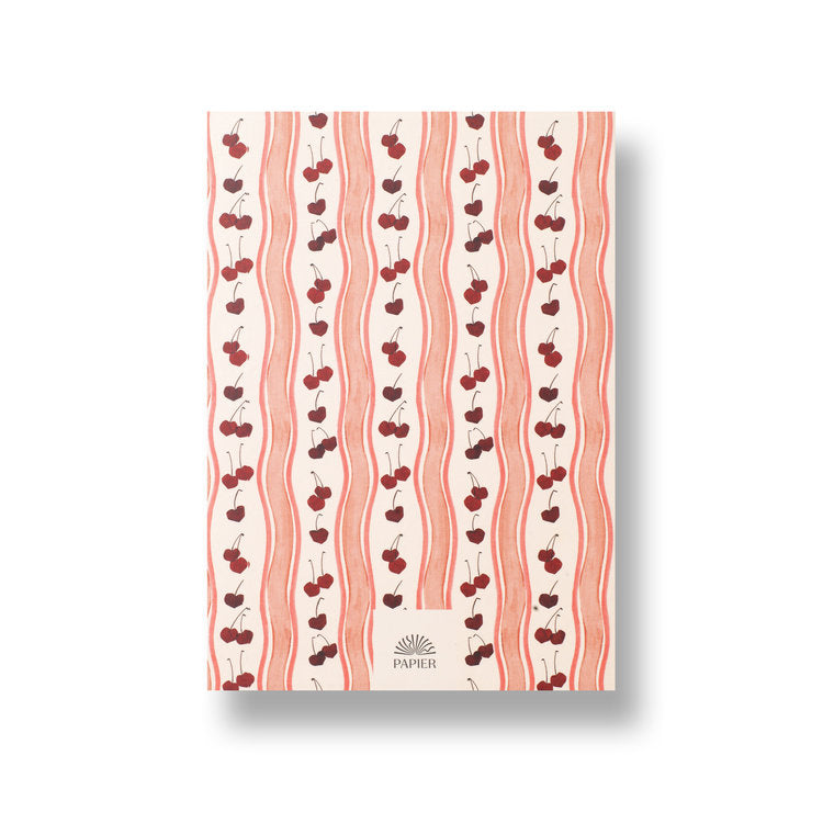 A cherry patterned softcover lined notebook with foldouts and 192 pages. A great gift for anyone to keep organised, by Papier.