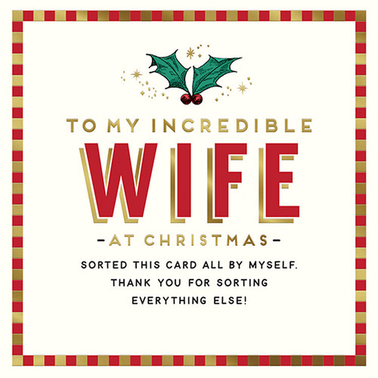Send festive wishes to an incredible Wife at Christmas with this fabulous card. Supplied with a matching envelope.