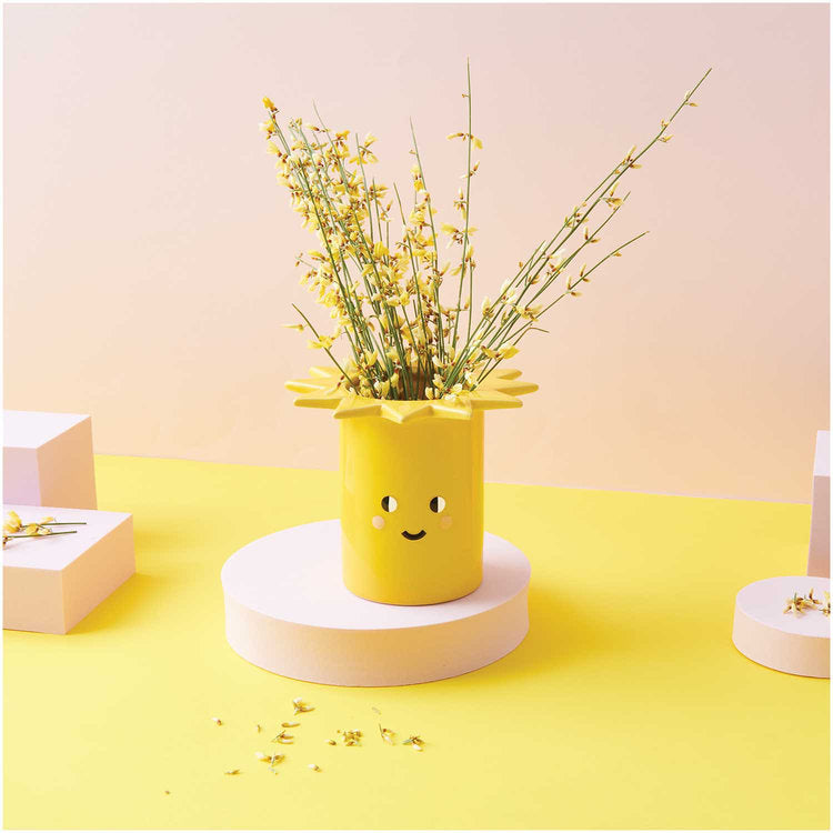 Ceramic sun-shaped vase with a cute face.